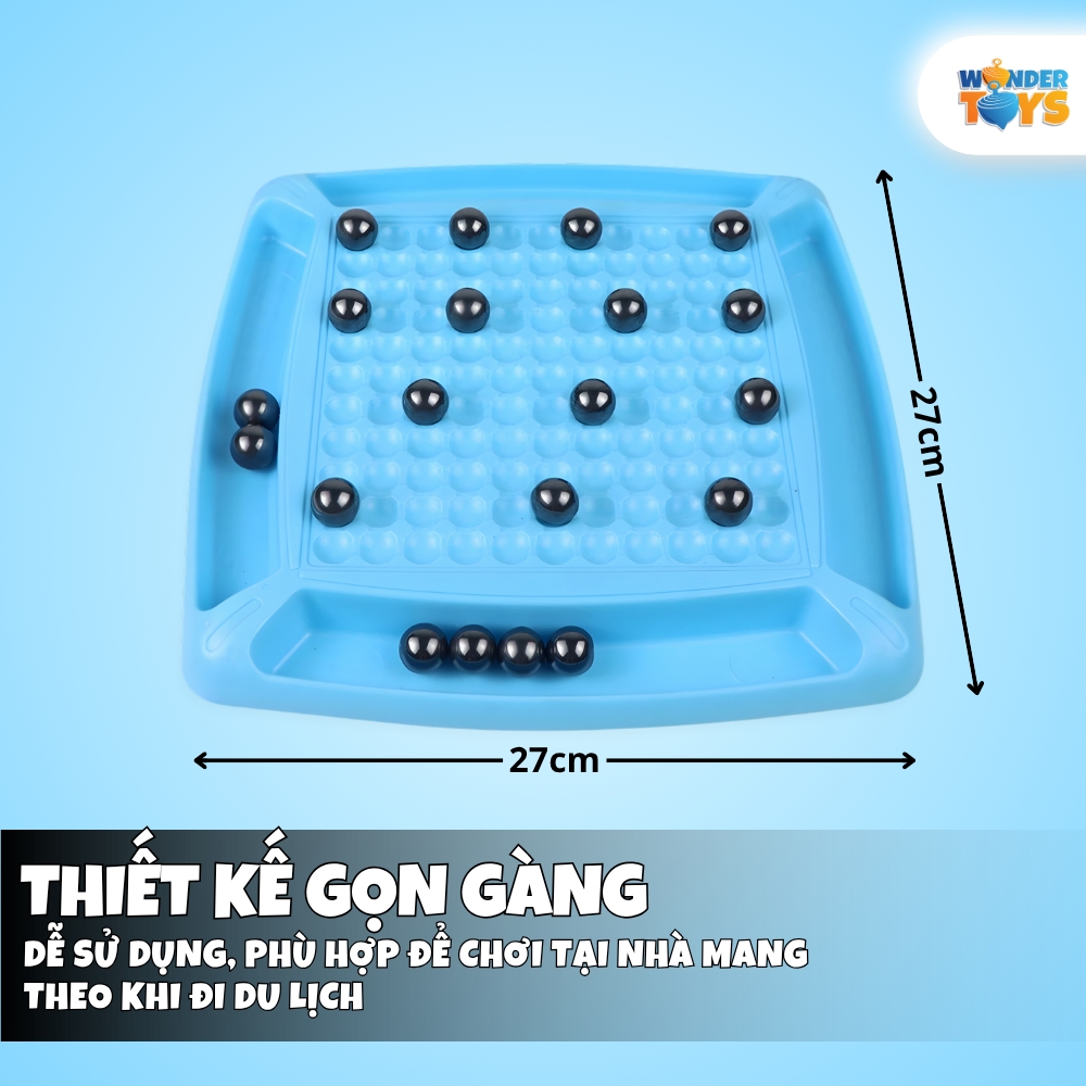 Đồ Chơi Bộ Cờ 20 Quân Nam Châm Từ Tính Bảng Xanh Dương, Bàn Cờ Bi Chiến Thuật Cho Bé, Trò Chơi Cờ Xếp Hình 🎉 Phù hợp cho bé từ 3 tuổi trở lên và cả gia đình cùng tham gia! Thiết kế đơn giản, dễ làm quen giúp bé hạn chế thời gian tiếp xúc thiết bị điện tử và tạo những phút giây vui vẻ bên gia đình. 📦 THÔNG TIN CHI TIẾT SẢN PHẨM - Bộ đồ chơi gồm: bàn cờ x1, Bi nam châm x20, vòng xoay thưởng phạt x 1, túi đựng x 1 - Chất liệu: Nhựa Abs an toàn -Đóng gói: Hộp màu - Màu sắc: xanh dương nhạt - Kích thước sp: 27 x 27 x 3 - Kích thước đóng gói: 27.5 x 27.5 x 3.5 - Phù hợp cho trẻ em và gia đình chơi tại nhà 🎯 CÔNG DỤNG TÍNH NĂNG - Giúp rèn luyện phản xạ tay — mắt và khả năng tập trung - Hỗ trợ vận động nhẹ nhàng, giải trí trong nhà - Thiết kế nhỏ gọn, dễ mang theo khi đi chơi, dã ngoại 🕹️ HƯỚNG DẪN SỬ DỤNG - Bước 1: Chuẩn bị + Chia đều 20 quân nam châm cho các người chơi (ví dụ: 2 người chơi mỗi người 10 quân, 4 người chơi mỗi người 5 quân). + Đặt bảng xanh (hoặc vòng dây) lên một mặt phẳng vững chắc. - Bước 2: Bắt đầu chơi +Người chơi lần lượt đặt từng quân nam châm vào các ô hoặc vị trí bất kỳ trong lòng bảng. + Quy tắc vàng: Khi đặt quân của mình xuống, nếu quân đó hút bất kỳ quân nào khác đang nằm trên bàn (tạo thành một chùm), người chơi đó phải thu hồi toàn bộ số quân bị hút đó về phía mình. - Bước 3: Kết thúc + Trò chơi tiếp tục theo vòng tròn cho đến khi có một người đặt được quân cuối cùng trên tay xuống bàn cờ mà không làm chúng hút nhau. + Người đầu tiên hết quân trên tay là người chiến thắng. 🧼 BẢO QUẢN VÀ CAM KẾT - Lau sạch bằng khăn khô hoặc khăn ẩm sau khi sử dụng - Bảo quản nơi khô ráo, tránh nhiệt độ cao - Sản phẩm được kiểm tra trước khi đóng gói ⚠️ LƯU Ý - Nên sử dụng dưới sự quan sát của người lớn với trẻ nhỏ - Không dùng lực mạnh lên bề mặt bàn #coluyentrinho #dochoi #tritue #magnestic #force #chess #dochoi3d #trochoi #banco #quanco #iq #tuduy #sangtao #iqgame #trinho #cobanamcham #cotutinh #banconamcham #cobichienthuat #coxephinh3d