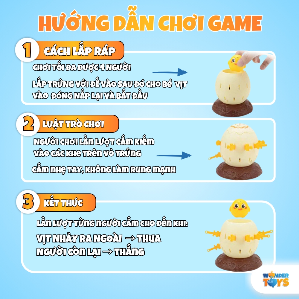 Đồ Chơi Thùng Cướp Biển Vui Nhộn Hình Trứng Gà Con Trò Chơi Giải Trí Tăng Phản Xạ Cho Bé 🎉 Phù hợp cho bé từ 3 tuổi trở lên và cả gia đình cùng tham gia! Bạn đang tìm một trò chơi hồi hộp, vui nhộn để khuấy động không khí buổi tụ họp? Đồ chơi thùng cướp biển theme Trứng Gà Con mang đến trải nghiệm bất ngờ khi mỗi lượt cắm kiếm đều có thể khiến chú gà bật ra. Sản phẩm phù hợp cho trẻ em, phụ huynh và bạn bè chơi cùng tại nhà, lớp học hoặc party, giúp tăng tương tác và tạo tiếng cười sảng khoái. 📦 Thông tin chi tiết sản phẩm - Tên sản phẩm: Thùng cướp biển theme Trứng Gà Con — Duck Game - Kích thước sản phẩm: 10 x 9.5 x 10 cm - Bộ gồm: quả trứng x1, vỏ trứng x1, tổ trứng x1, gà con x1, kiếm x24 - Chất liệu: Nhựa ABS an toàn, bề mặt nhẵn - Màu sắc: Vàng / Nâu - Đóng gói: Hộp màu - Kích thước đóng gói: 10 x 9.5 x 10 cm 🎯 Công dụng / Tính năng - Mang lại trò chơi hồi hộp, vui nhộn cho trẻ và gia đình - Giúp rèn luyện sự khéo léo và phản xạ tay - Hỗ trợ tăng tương tác giữa nhiều người chơi - Thiết kế nhỏ gọn, dễ mang theo khi đi chơi 🕹️ Hướng dẫn sử dụng - Lắp chú gà vào trong quả trứng và đặt lên tổ - Người chơi lần lượt cắm kiếm vào các khe trên vỏ trứng - Một khe ngẫu nhiên sẽ làm gà bật ra khỏi trứng - Người khiến gà bật ra sẽ thua lượt hoặc chịu phạt theo thỏa thuận 🧼 Bảo quản & Cam kết - Lau sạch bằng khăn khô hoặc khăn ẩm sau khi chơi - Cất gọn các chi tiết vào hộp sau khi sử dụng - Bảo quản nơi khô ráo, tránh nhiệt độ cao - Sản phẩm được kiểm tra trước khi đóng gói ⚠️ Lưu ý - Tránh tác động lực mạnh hoặc làm rơi sản phẩm - Sử dụng dưới sự quan sát của người lớn với trẻ nhỏ - Không để gần nguồn nhiệt hoặc nước lâu #duckgame #thungcuopbien #dochoigacon #dochoitreem #dochoigiađinh #dochoiparty #trochoivuinhon #dochoichobe #dochoigiatri
